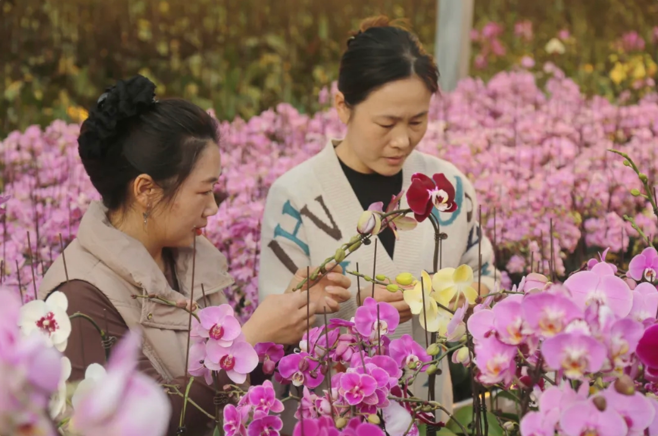“五顏六色的花看得人眼花繚亂,這么大的花卉基地我還是第一次見?!睅鞝柪帐忻窀邥m手里捧著剛選好的蝴蝶蘭,笑意盈盈地說,“這里的蝴蝶蘭品質(zhì)好、價格公道,工作人員還會詳細講解養(yǎng)護方法,買花又省心又方便?!?/p>