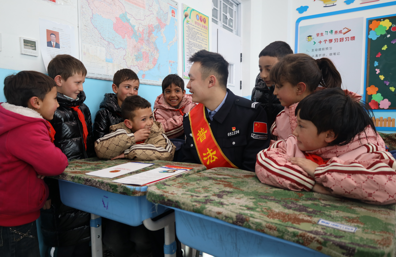 新疆紅其拉甫出入境邊防檢查站舉辦“與法童行”進校園活動